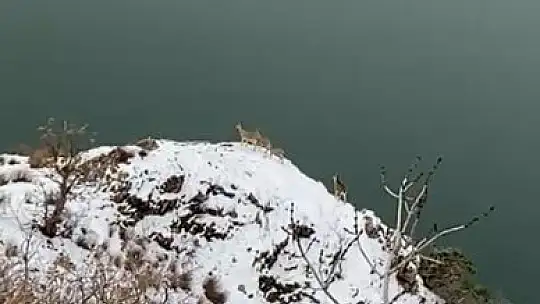 Elazığ'da jandarma ekipleri, olumsuz hava koşulları nedeniyle beslenmekte güçlük çeken yaban hayvanları için doğaya yem bıraktı. Nesli tükenme tehlikesi altında olan yaban keçilerinin ise doğaya bırakılan yemden faydalandığı anlar cep telefonu kamerasına yansıdı.