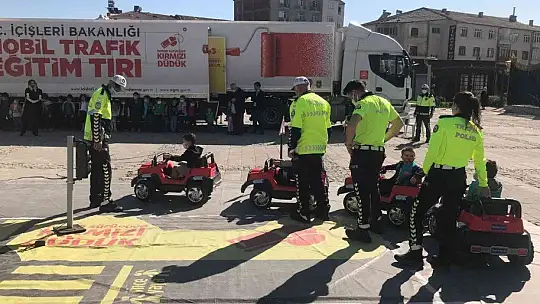 İçişleri ve Milli Eğitim Bakanlığı tarafından öğrencilere trafik eğitimi verilmesi amacıyla hayata geçirilen Mobil Trafik Eğitim tırı 2'inci gününde Elazığ'da öğrencilerle buluştu.