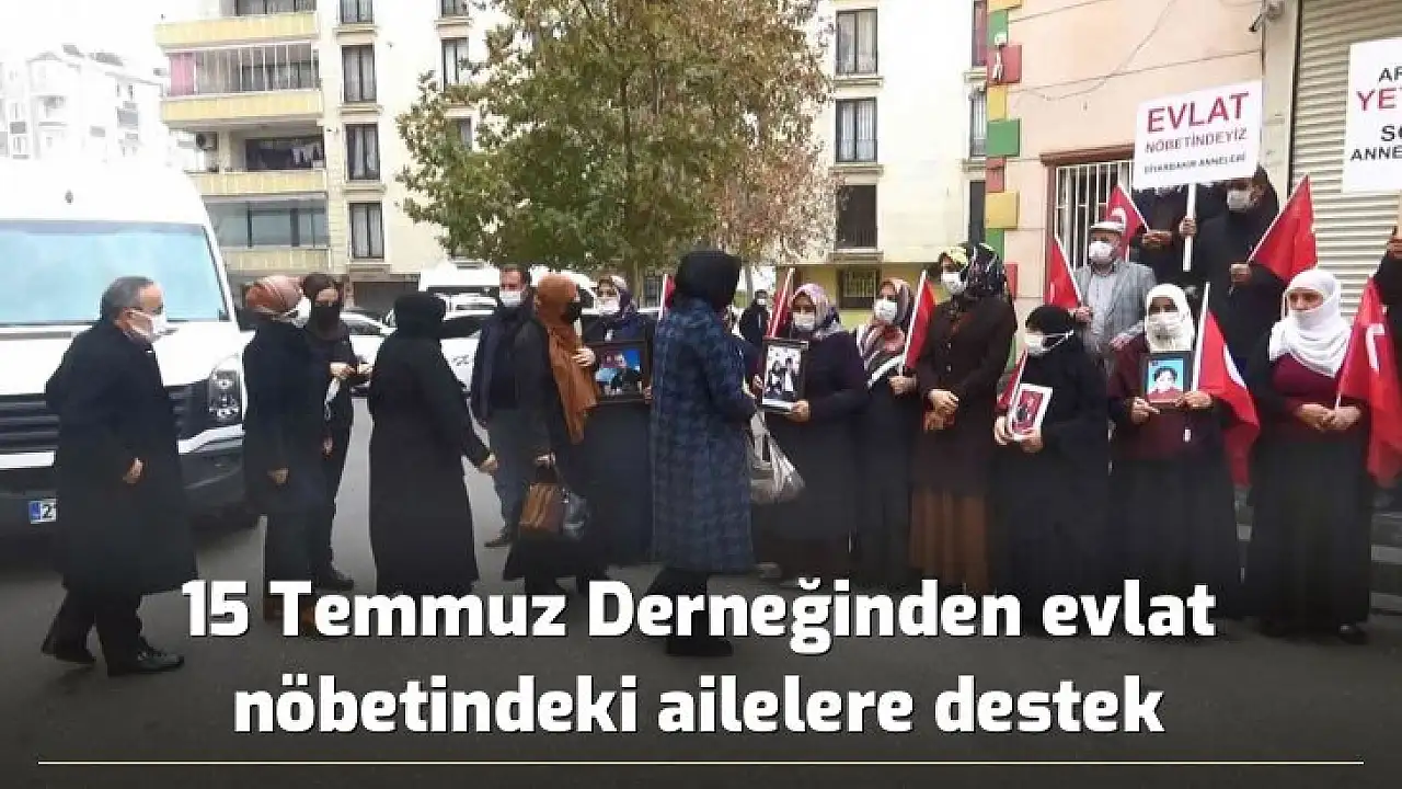 Diyarbakır'da çocukları terör örgütü PKK tarafından dağa kaçırıldığı iddiasıyla HDP il binası önündeki ailelerin evlat nöbeti, 836'ıncı günde de sürerken, 15 Temmuz Derneği başkan ve üyeleri, 15 Temmuz şehitlerinin yakınlarıyla birlikte ailelere destek ziyaretinde bulundu.
