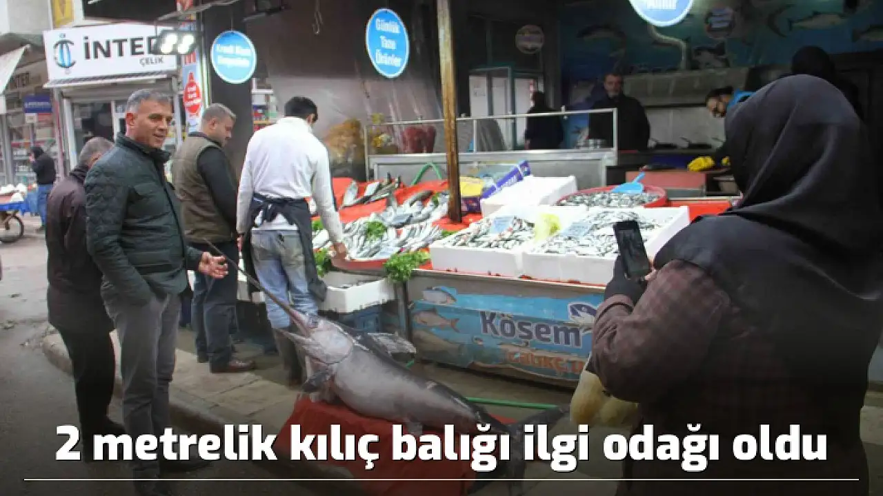 Elazığ'da tezgahta sergilenen 204 santim uzunluğunda ve 53 kilo ağırlığındaki kılıç balığı ilgi odağı oldu. Hayatında ilk defa kılıç balığı görenler, fotoğraf çekmek için sıraya girdi.