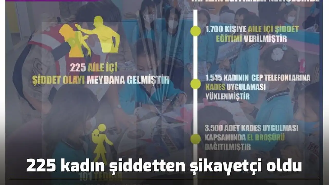 Bu arada, bin 700 kişiye aile içi şiddet eğitimi verildi. Bin 545 kadının cep telefonlarına Kadın Destek Programı (KADES) uygulaması yüklendi. 3 bin 500 adet KADES uygulaması kapsamında el broşürü dağıtıldı.