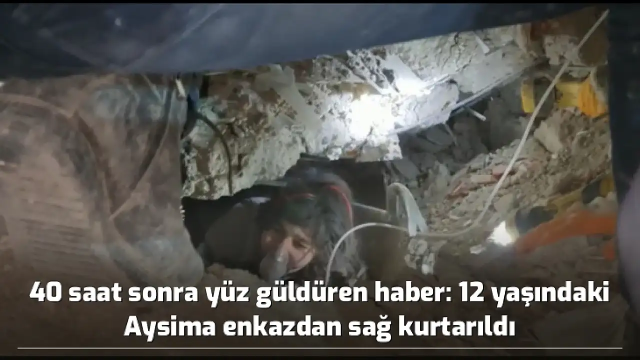 Kahramanmaraş'ta meydana gelen depremler nedeniyle Malatya'da çöken bir binada mahsur kalan 12 yaşındaki Aysima Yılmaz 40 saat sonra sağ olarak kurtarıldı.