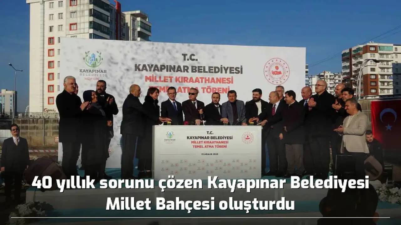 Diyarbakır’ın Kayapınar ilçesi Fırat Mahallesinde 2022 yılında başlatılan yerinde dönüşüm çalışması ile 52 bin metrekare alan üzerinde 96 yapının yıkımı gerçekleştirilen Aşağı Karakuyu mevkisinde Millet Bahçesi ve Kütüphanesinin temel atma törenini gerçekleşti. 2006 yılında imar planının yapıldığı, 15 yıldır ruhsatlı yapılaşmanın olduğu bölgedeki 40 yıllık bir sorunu çözen Kayapınar Belediyesi gençler ve çocuklara hizmet verecek olan Millet Bahçesi ve Kütüphanesinin yapımına temel atarak resmen başladı. Törene Diyarbakır Valisi ve Büyükşehir Belediye Başkan Vekili Ali İhsan Su, Büyükşehir Belediyesi Genel Sekreteri Abdullah Çiftçi, Kayapınar Kayamakamı ve Belediye Başkan Vekili Arif Karaman, AK Parti MKYK üyeleri Alaattin Parlak ve Suna Ataman Kepolu, yüklenici firma yetkilileri, vatandaşlar ve öğrenciler katıldı.