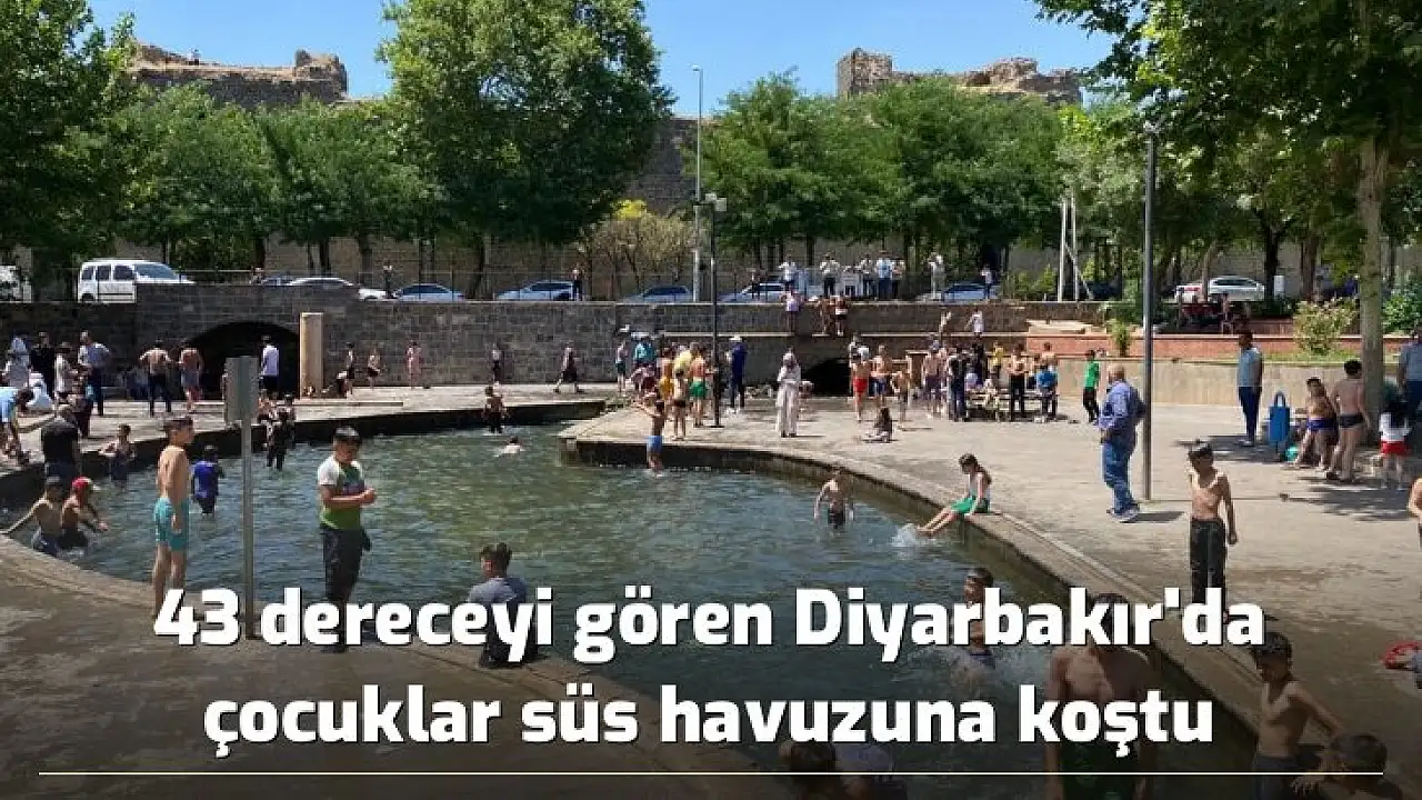 Diyarbakır'da Kurban Bayramı'nın ikinci gününde hava sıcaklığı kentte 43 dereceyi görünce çocuklar süs havuzuna akın etti.