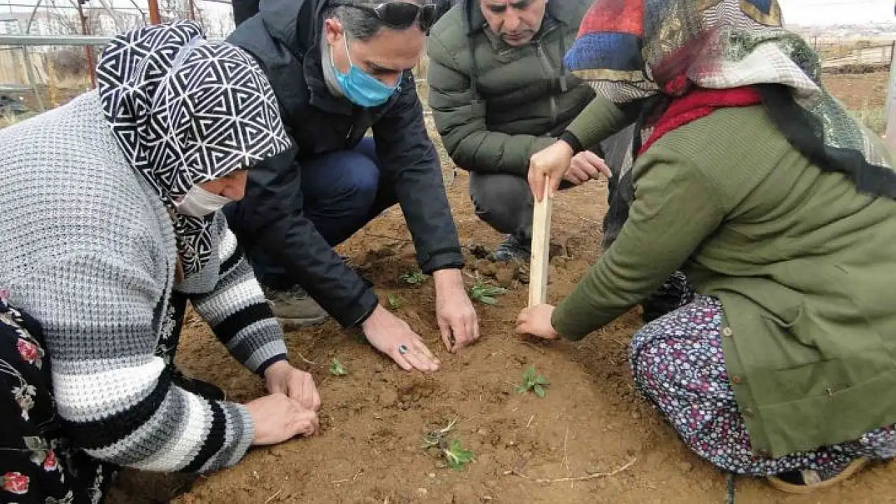 Malatya'da alternatif tarım ürünleri çiftçilere hibe destekli olarak önerilirken, bu kapsamda Yeşilyurt Belediyesi'ne verilen 50 bin adet salep fidesi toprakla buluşturuldu.