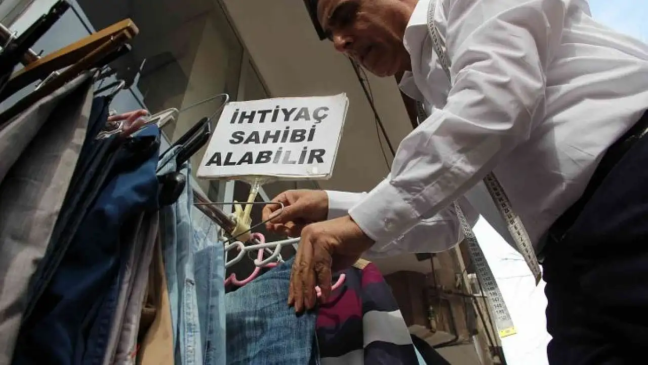 Elazığ'da 68 yaşındaki bir terzi, hem kendinin hem vatandaşın getirdiği ve kendisinin tamiratını yaptığı kıyafetleri 'Askıda Kıyafet' kampanyasıyla 10 yıldır ihtiyaç sahiplerine ulaştırıyor.