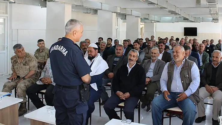 Elazığ İl Jandarma Komutanı Albay Ali Yıldız, Karakoçan ilçesinde muhtarlarla bilgilendirme toplantısında bir araya geldi.
