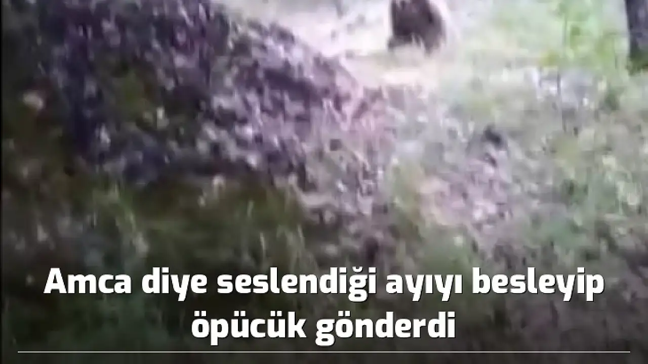 Amca diye seslendiği ayıyı besleyip öpücük gönderdi