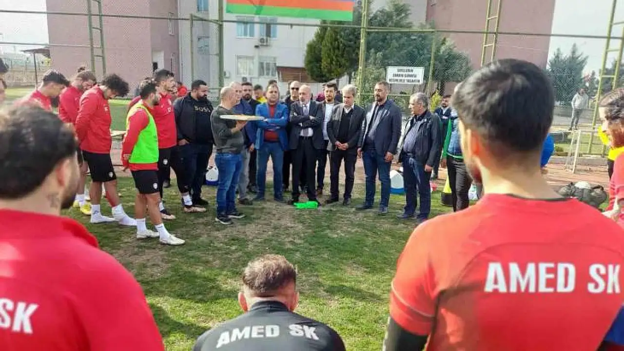 TFF 2. Lig Beyaz Grup’ta mücadele eden Amed Sportif Faaliyetler, ligin 26. haftasında Cumartesi günü Saat 14.00’te Afyonspor’u konuk edecek. Şanlıurfa maçı sonrasında çıkan saha olayları nedeniyle 1 maç seyircisiz oynama ceza alan yeşil-kırmızılılar, bu hafta seyircisiz oynayacak. Amedspor Yüksek İstişare Kurulu Üyeleri, Şehmus Özer Spor Tesisleri’nde yapılan Antrenman sonrası Sporculara tatlı ikram ederek, destek ziyaretinde bulundu.