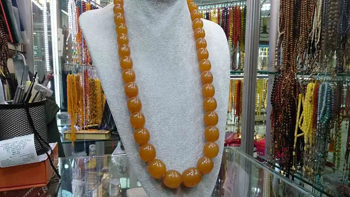 Elazığ'da bir tespih dükkanında bulunan 200 yıllık damla kehribardan yapılan at gerdanlığı 50 bin liraya alıcısını bekliyor.