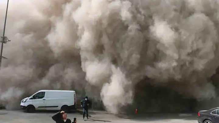 Diyarbakır'da, Kahramanmaraş merkezli depremlerde ağır hasar gören Galeria İş Merkezi ve üstündeki sitenin yıkımı tekrar başladı. 89 kişinin öldüğü yapı, bir dokunuşla yerle bir olurken, ortalık toz topuna döndü.