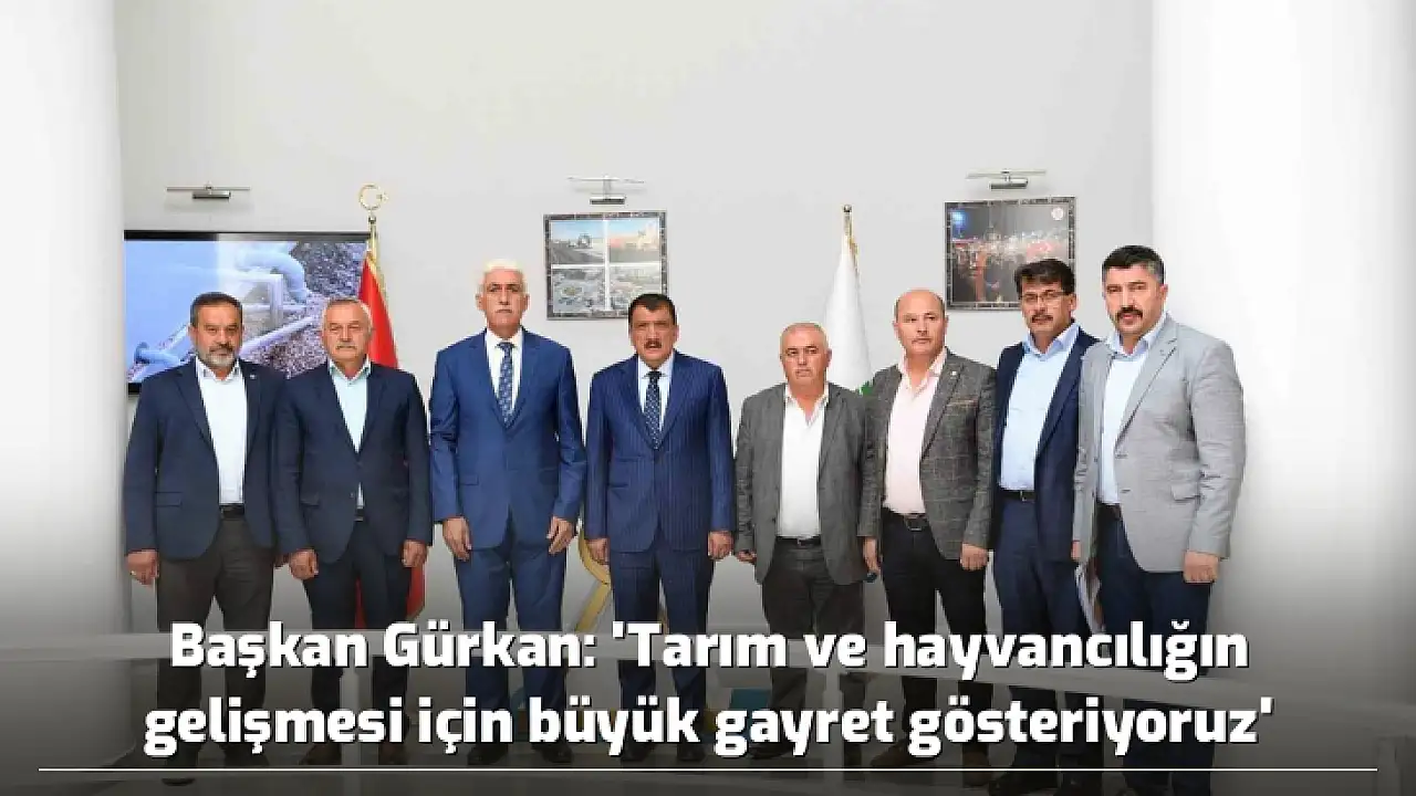 Ziraat Odası Başkanlarını ağırlayan Malatya Büyükşehir Belediye Başkanı Selahattin Gürkan, 'Biz tarımın, hayvancılığın gelişmesi, ürünlerimizin daha kaliteli olması noktasında ve kayısımızın dünya pazarında hak ettiği yeri alması noktasında büyük gayret gösteriyoruz' dedi.