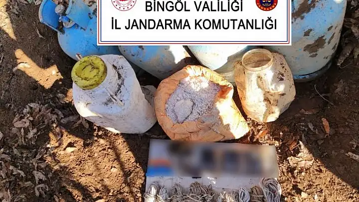 Bingöl'de jandarma tarafından icra edilen Eren Kış-6 operasyonu kapsamında 20 kilogram amonyum nitrat, 4 adet mutfak tüpü, 10 pil şarj cihazı, 4 adet şarjlı pil, 200 metre uzunluğunda kablo ve muhtelif malzeme ele geçirildi.
