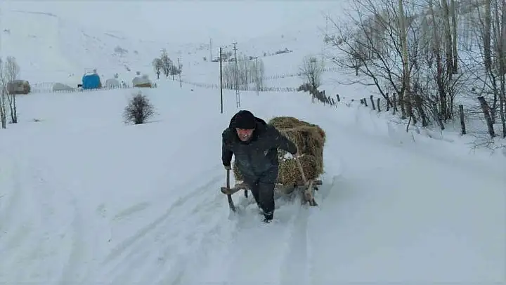 Bingöl genelinde etkili olan kar yağışı, kırsal alanda besicilik ile uğraşan vatandaşların işlerini zorlaştırıyor. Karlıova ilçesine yaklaşık 25 kilometre uzaklıkta bulunan Kaynarpınar köyündeki besicilerin birçoğu, kar yağışının yer yer 1 metreyi bulmasına rağmen her gün 2 kilometre boyunca kızaklara yüklediği otlarla hayvanlarını beslemeye çalışıyor. Köyde ikamet eden ve baba mesleği olan besiciliği yıllardır sürdüren 4 çocuk babası Fazlı Gürgen (42), her gün erken saatlerde uyanarak zorlu mesaiye başlıyor. 100 adet küçükbaş hayvanı olan Gürgen, günde birkaç kez hayvanlarını kar üstünde otlatmak için yaz aylarında biçtiği otları kızağa yüklüyor ve 2 kilometre boyunca taşımasını yapıyor.