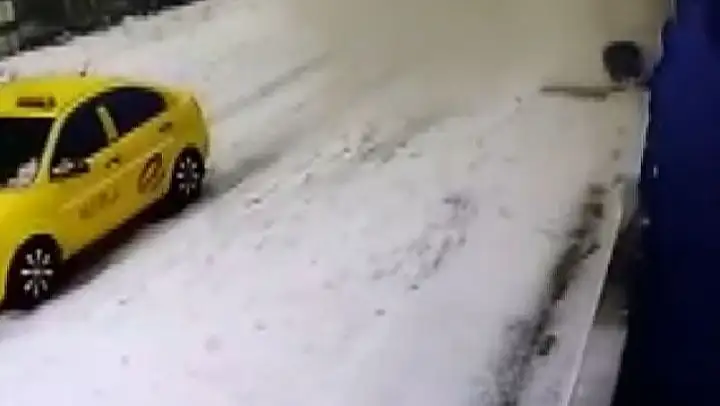 Bingöl'de bir vatandaş, binanın çatısından üzerine kar kütlesinin düşmesi ile yaralandı. Yaşananlar ise güvenlik kamerasına saniye saniye yansıdı.