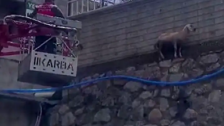 Bingöl'de istinat duvarında mahsur kalan koyun kurtarıldı