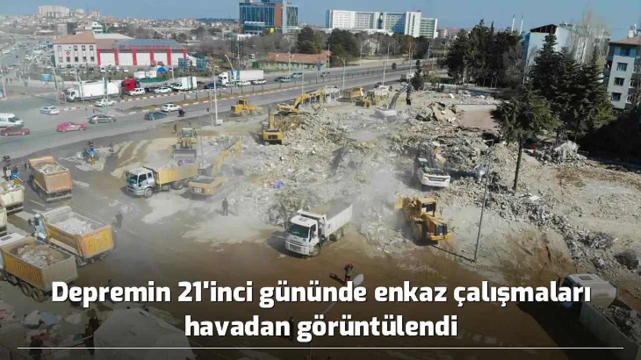 Malatya'da depremin 21'inci gününde devam eden enkaz kaldırma çalışmaları havadan görüntülendi.