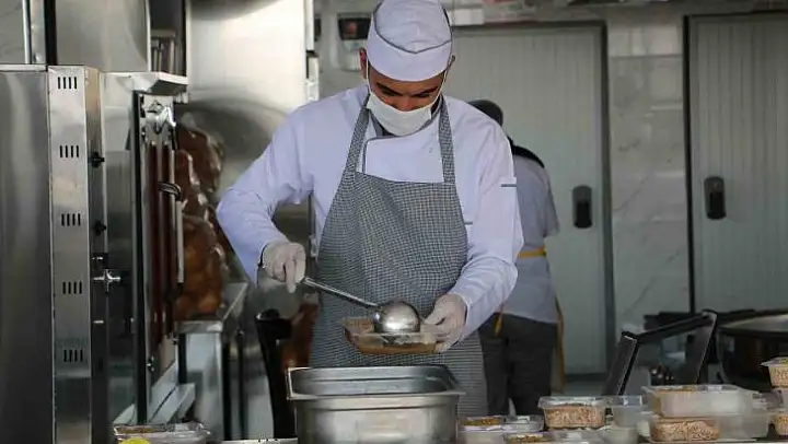 Aşçıbaşı Mehmet Emin Tanrıverdi, ürünlerin Tarım Kooperatifinden geldiğini ve birinci kalitede olduğunu söyledi. Tanrıverdi, 'Yemekhanede 8 personel olmak üzere çalışmaktayız. Özellikle hijyene çok önem veriyoruz. Günde 3 çeşit yemek yapıyoruz. Ana yemek başta olmak üzere sulu ve tatlı çeşitleri yapıyoruz. Günde 750 kişiye yemek çıkarıyoruz. Evimizde nasıl güzel yemek yapıyorsak burada da aynı şekilde yapıyoruz. Yemek malzemelerimiz Tarım Kooperatifinden gelip birinci kalite olmaktadır. Günde bir öğün yemek çıkarıyoruz. Toplam 7 aracımızla mahallelerdeki vatandaşlarımıza dağıtım sağlıyoruz' diye konuştu.