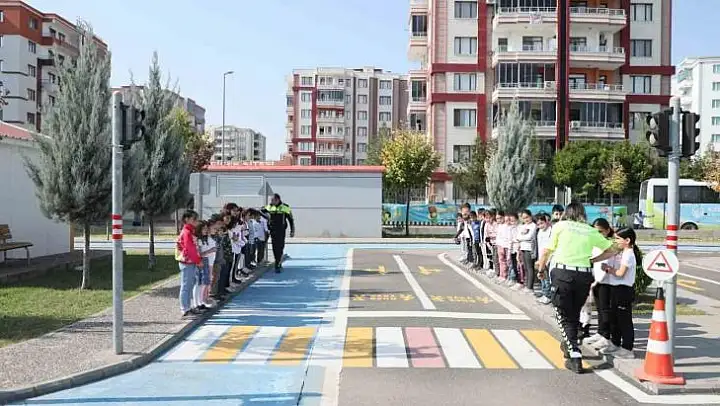 Diyarbakır'da ilkokul öğrencilerine trafik konusundaki farkındalığın geliştirilmesi amacıyla uygulamalı trafik eğitim verildi.