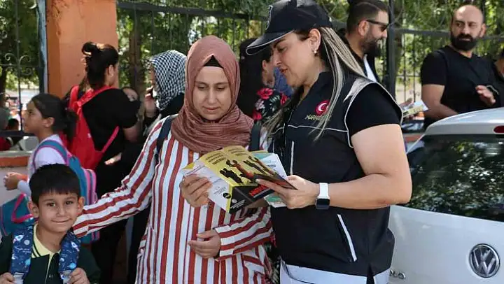 Diyarbakır'da 2023-2024 eğitim öğretim yılının başlamasıyla polis ekipleri uyuşturucu kullanımının zararlarıyla ilgili bilinçlendirme yapmak amacıyla okul bahçesinde öğrencilere ve velilere broşür dağıttı.
