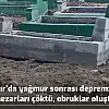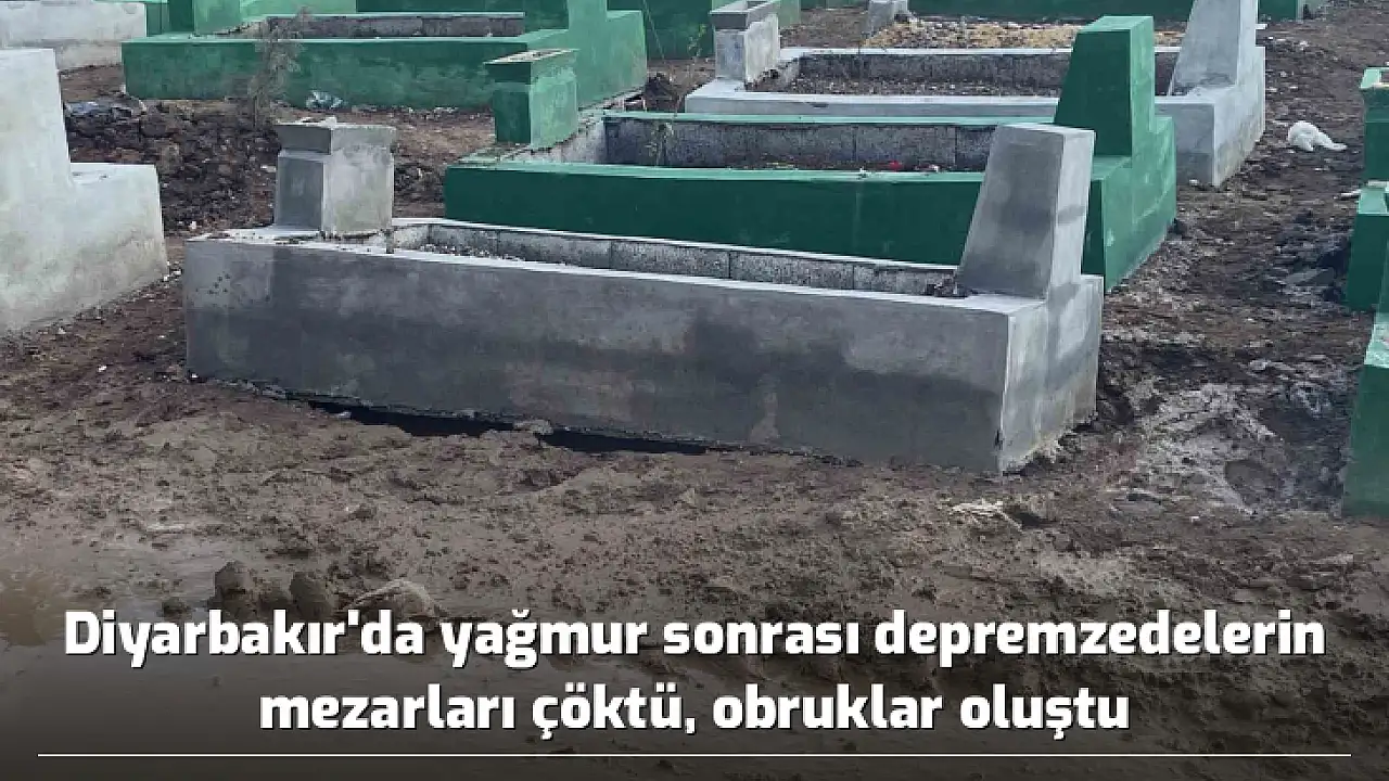 Diyarbakır'da geçtiğimiz gün etkili olan yağmur sonrası birçok yerde hasar meydana gelirken, depremde hayatını kaybeden vatandaşların mezarlıkları çöktü, obruklar oluştu.
