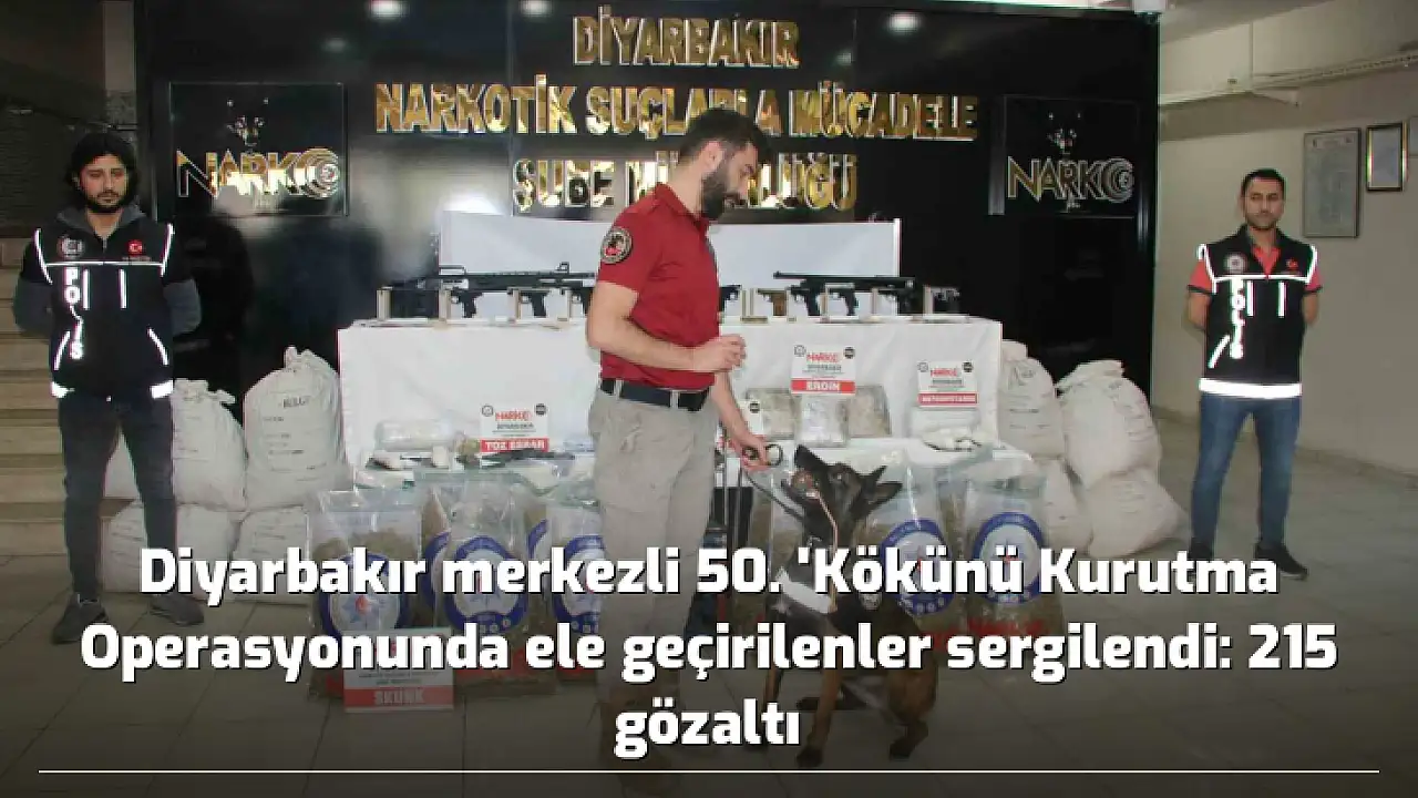 Diyarbakır merkezli 8 ilde başlatılan 50. Kökünü Kurutma Operasyonunda kilolarca uyuşturucu madde ve türevleri ile silah ele geçirilirken, gözaltı kararı çıkartılan 236 şüpheliden 215'i yakalandı.