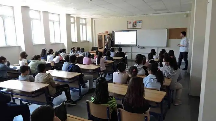 Elazığ'da polis, SİBERAY farkındalık çalışmaları çerçevesinde 160 öğrenciye eğitim verdi.