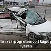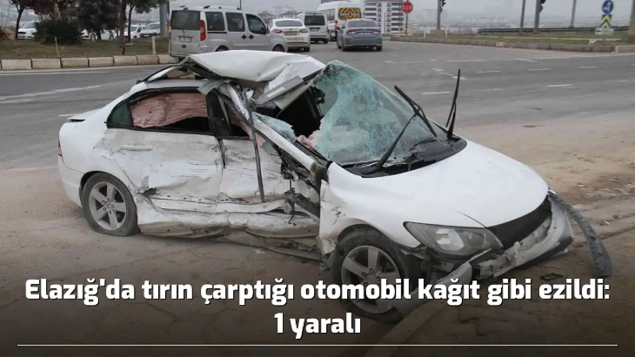 Elazığ'da tır ile otomobilin çarpışması sonucu meydana gelen kazada, otomobil kağıt gibi ezilerek hurdaya döndü. Kazada sürücü yaralandı.