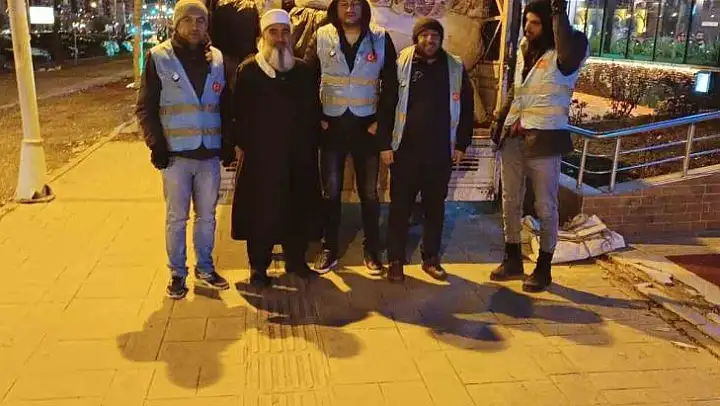 Diyarbakır'ın Dicle ilçesinde emekli polis ve bir grup arkadaşı depremzedelere yardım etmek için kolları sıvadı.