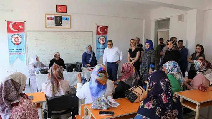 Ergani'de 2. Nolu Aile Destek Merkezi'nde eğitim gören kursiyerleri ziyaret eden Kaymakam Ahmet Karaaslan ve eşi Tülin Karaaslan, tamamlanan çalışma ve aktif kurslar hakkında bilgi aldı.