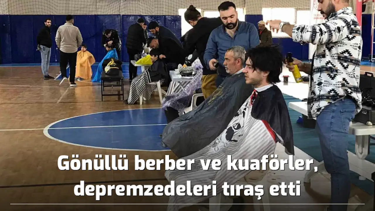 Elazığ'da gönüllü berber ve kuaförler, KYK kurdunda misafir edilen depremzedeleri tıraş ederek kişisel bakımlarını yaptı.