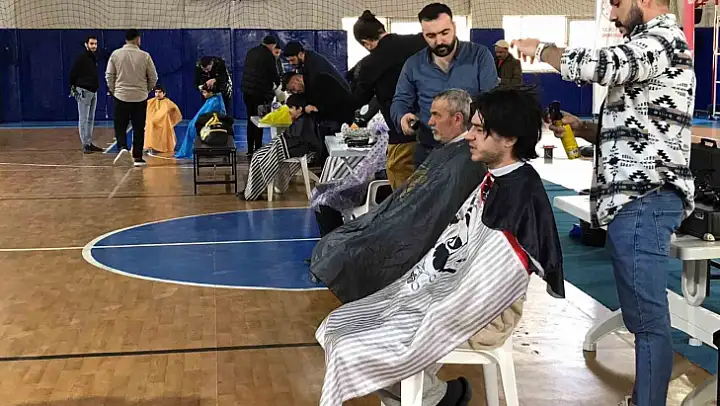 Gönüllü berber ve kuaförler, depremzedeleri tıraş etti