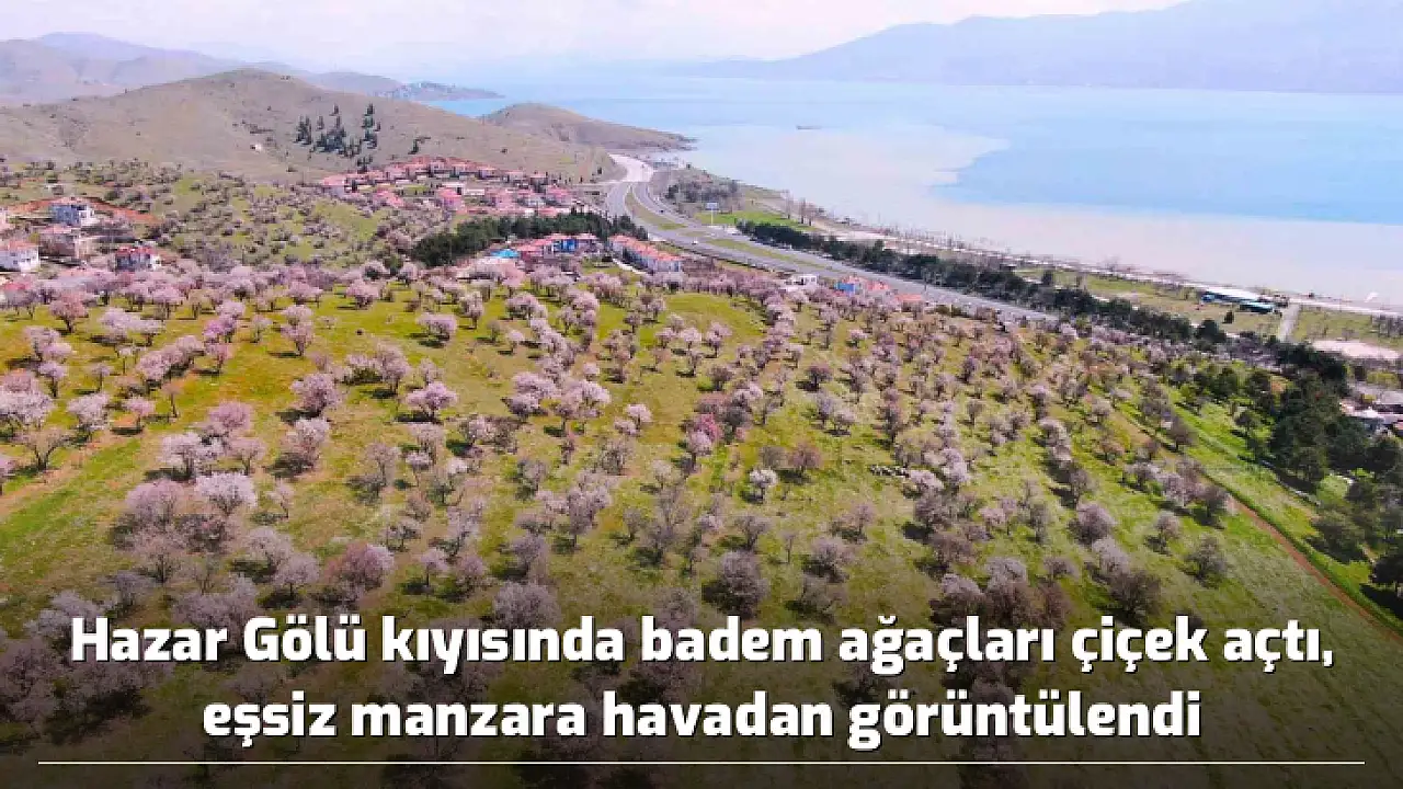 Hazar Gölü çevresini süsleyen ve baharın gelmesiyle çiçek açan badem ağaçları, eşsiz görüntüler oluşturdu. Hazar Gölü manzarası ve yemyeşil ağaçların içinde beyaz renkleri ile görenleri kendilerine hayran bırakan badem ağaçları, havadan görüntülendi.