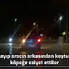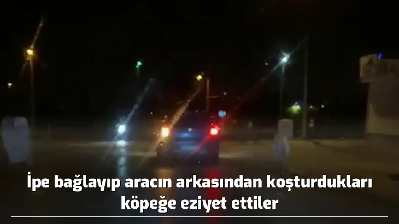 İpe bağlayıp aracın arkasından koşturdukları köpeğe eziyet ettiler