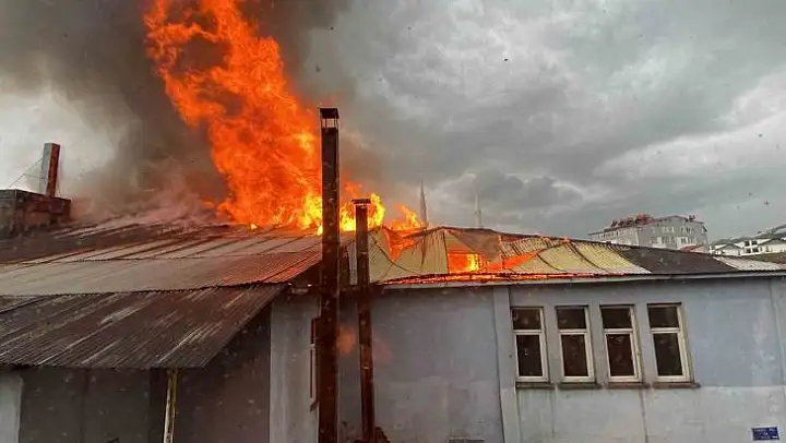 Karlıova'da pasaj yangını, dumanlar gökyüzünü kapladı