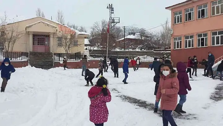 Arkadaşlarıyla kartopu oynayarak eğlendiğini dile getiren Elif Özçelik, 'Kar çok güzel eğleniyoruz. Hocamıza beden için çok ısrar ettik. Beden dersinde gibiyiz. Kartopu oynuyoruz, arkadaşlarımızla eğleniyoruz' dedi.