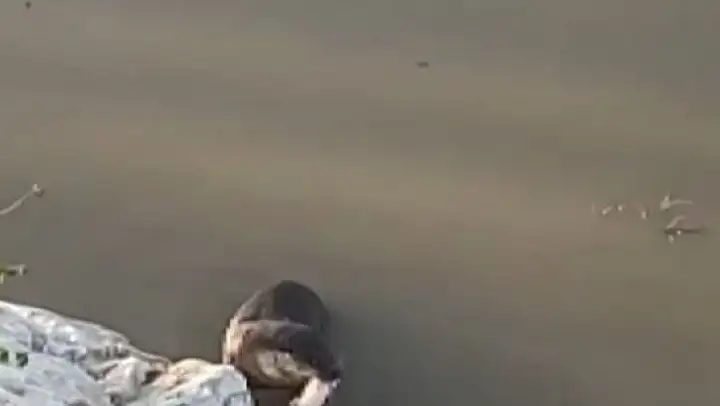 Tunceli'de koruma altında bulunan su samuru, yakaladığı balıkla Munzur Çayı'na dalarken cep telefonu kamerasıyla görüntülendi.