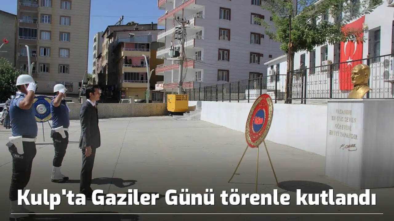 Kulp Kaymakamlığı önünde düzenlenen tören, Atatürk heykeline çelenklerin konulmasıyla başladı. Saygı duruşu ve İstiklal Marşı'nın okunmasıyla devam edilen programda Astsubay Kıdemli Çavuş Demet Çubukçu, günün anlamına ilişkin yaptığı konuşmanın ardından tören sona erdi. Daha sonra Kulp Kaymakamı ve Belediye Başkan Vekili Mustafa Gözlet, gaziler onuruna verilen yemekte şehit ve gazi yakınlarıyla bir araya gelerek kendileriyle tek tek ilgilenip sohbet etti. Kaymakam Gözlet, 'Kanlarıyla, canlarıyla bu toprakları vatan kılan aziz şehitlerimizi, aramızdan ayrılan kahraman gazilerimizi rahmet ve minnetle anıyorum. Gazilerimiz, şehit ve gazi yakınlarımıza kapılarımız ardına kadar açık. Taleplerinizi karşılamak ve sizlere hizmetin en güzelini sunmaya gayret ediyor, etmeye de devam edeceğiz. Yaşayan tüm gazilerimize sağlık ve esenlik diliyor bu şerefli günlerini kutluyorum' dedi.