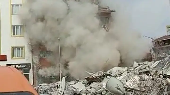 Malatya'da meydana gelen 5.6 büyüklüğündeki depremde kent merkezinde ağır hasarlı olan binaların yıkılma anları cep telefonu kamerasına yansıdı.