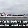 Tunceli'nin Pertek ilçesinde belediyeye ait feribotlar, 31 Aralık günü ücretsiz olarak hizmet verecek.