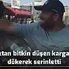 Sıcaktan bitkin düşen kargayı su dökerek serinletti