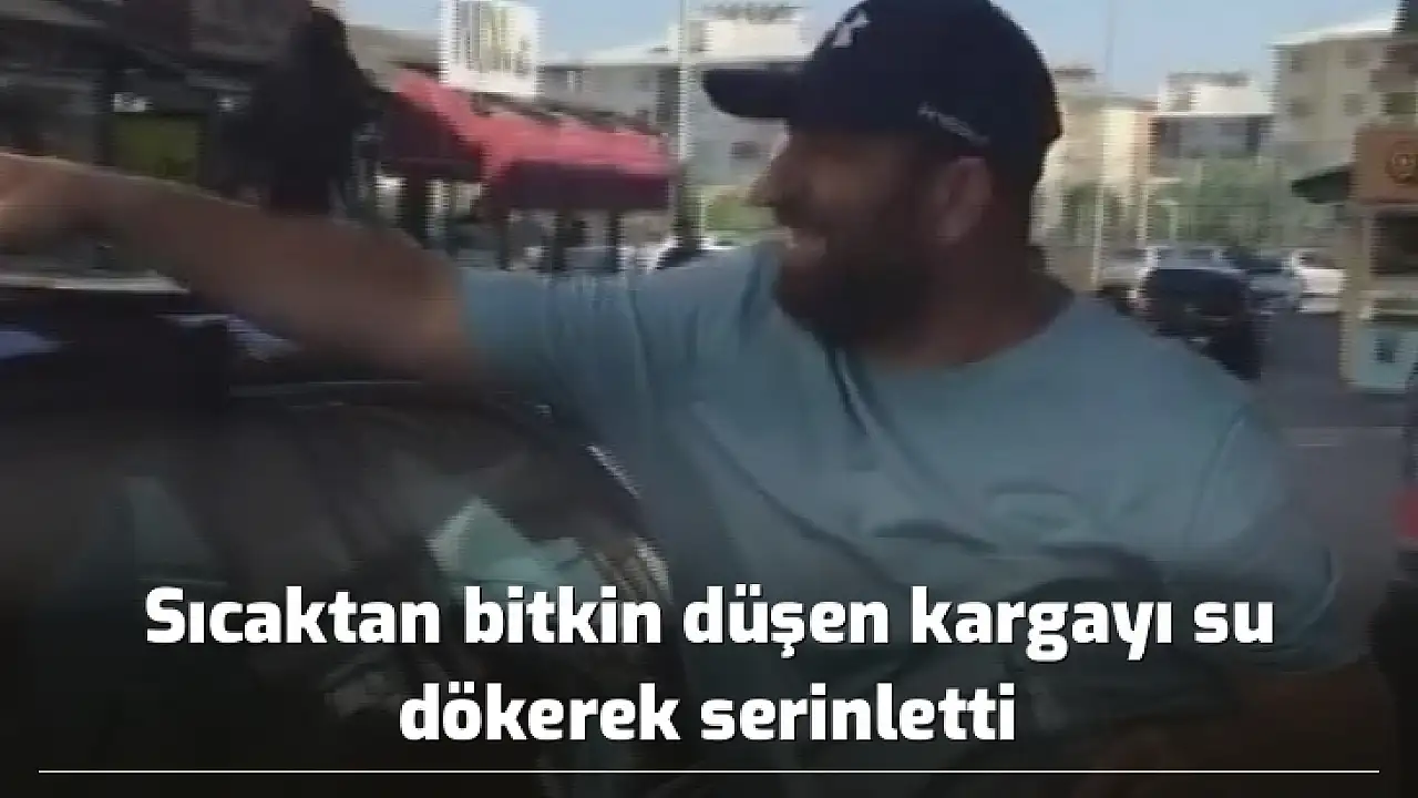 Bingöl'de sıcaklardan bitkin düşen kargayı bir vatandaş elindeki pet şişeden ile su dökerek serinletti.