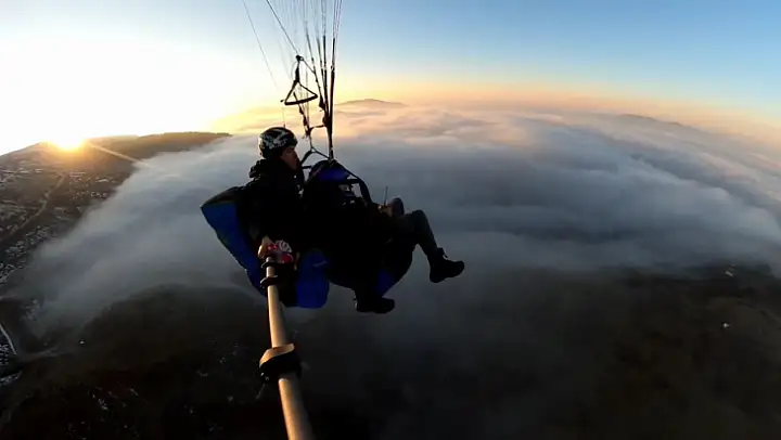 Elazığ'ın Sivrice ilçesinde sabahın erken saatlerinden itibaren etkili olan siste Hazar Gölü kayboldu. O anlar yamaç paraşütü pilotları tarafından havadan görüntülendi.
