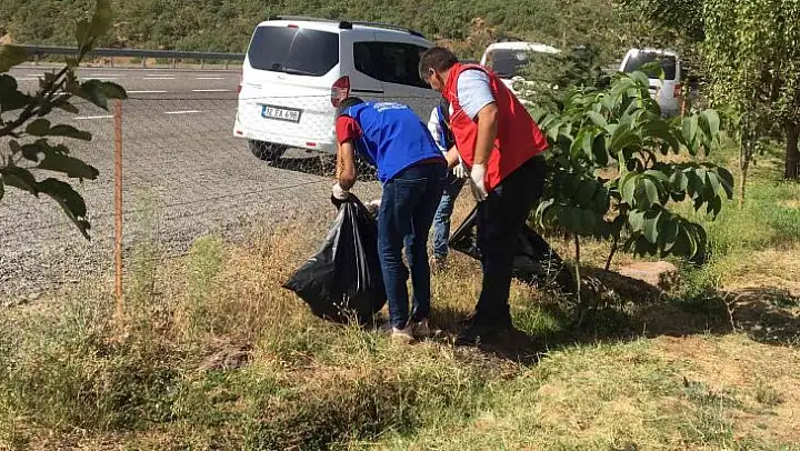 Bingöl'ün Solhan ilçesindeki Gençlik Merkezi liderleri ve gönüllüleri, karayolu kenarındaki dinlenme alanında çevre temizliği yaptı.