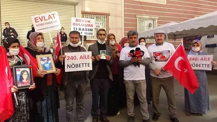 Diyarbakır'da çocukları PKK tarafından dağa kaçırılan aileler, HDP İl Başkanlığı önündeki nöbetine 797'inci gününde de devam ediyor. İstanbul'da 1992 yılında 17 yaşındayken kardeşi PKK tarafından kaçırılan ağabey de eyleme katıldı. Yeni katılım ile birlikte eylemdeki aile sayısı 240'a yükseldi.