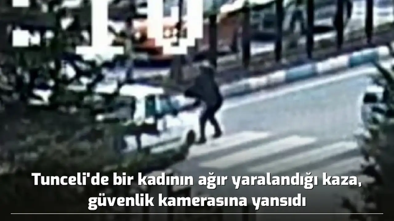 Tunceli'de 22 Kasımda meydana gelen ve bir kadının ağır yaralandığı trafik kazası, bir iş yerinin güvenlik kamerasına yansıdı. Görüntülerde, yaya geçidinden karşıya geçmekte olan kadına çarpan aracın, kadını metrelerce havaya fırlattığı görülüyor.