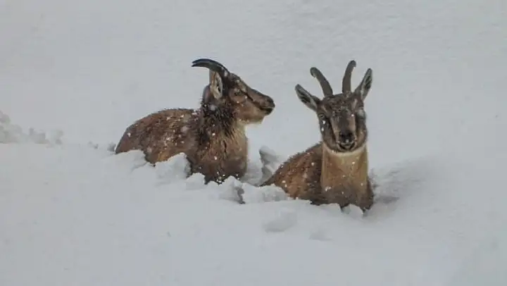 Yaban keçilerinin yoğun karda karınlarını doyurma mücadelesi