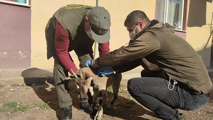 Tunceli'nin Çemişgezek ilçesinde yaralı halde bulunan koruma altındaki yaban keçisi, tedavi altına alındı.