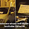 Aracın motoruna sıkışan kedi itfaiye ekipleri tarafından kurtarıldı