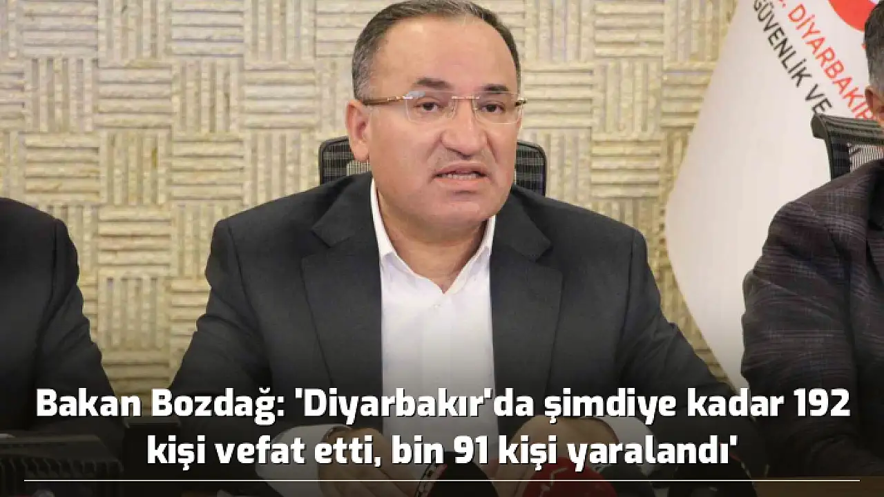 - Bakan Bozdağ: 'Diyarbakır'da şimdiye kadar 192 kişi vefat etti, bin 91 kişi yaralandı'